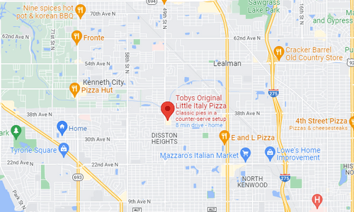 Located in Pinellas County, Toby's Original Little Italy Pizza brings that New York flavor to St. Pete with style. With fun & modern decorations, this is a must-try for all pizza lovers.